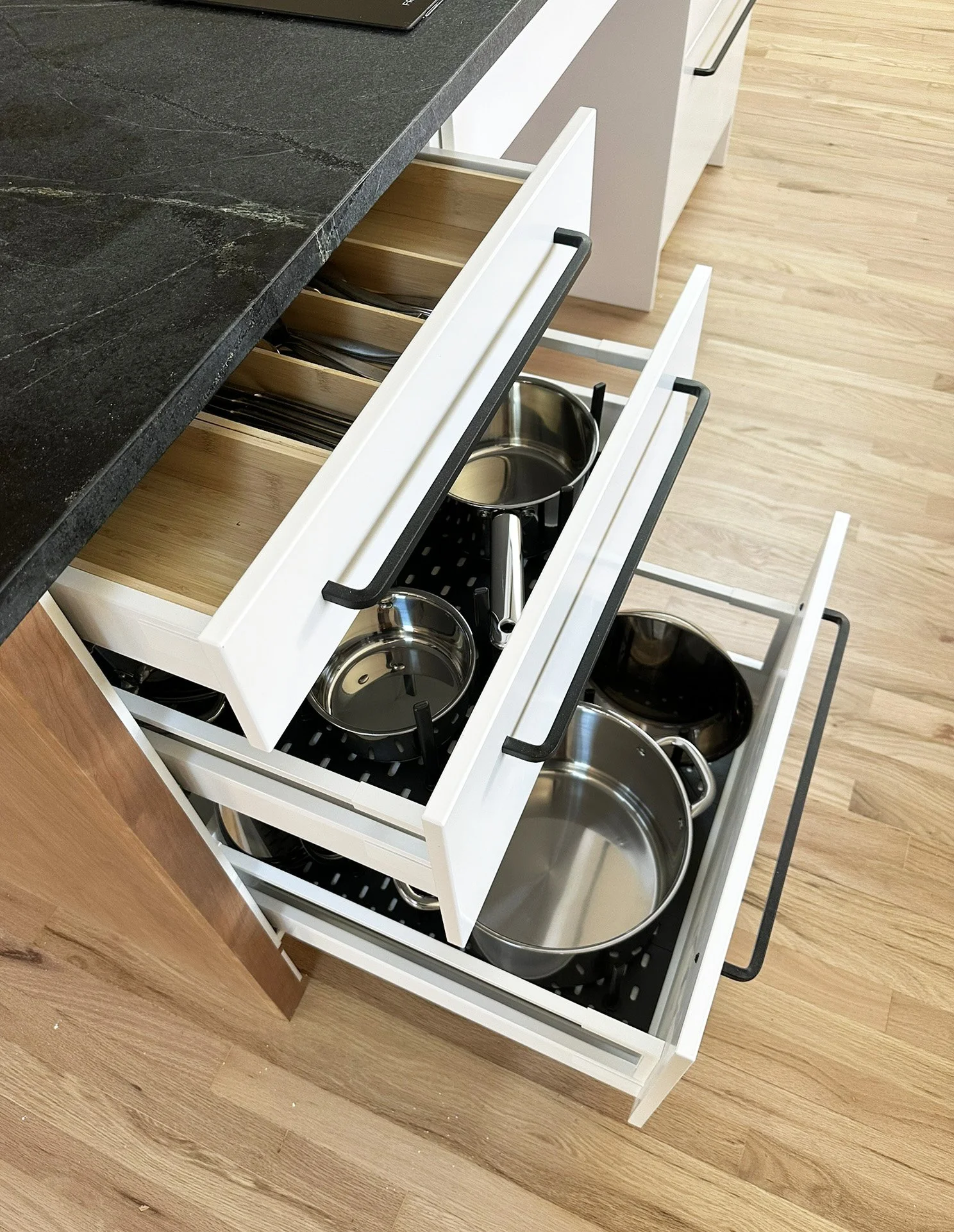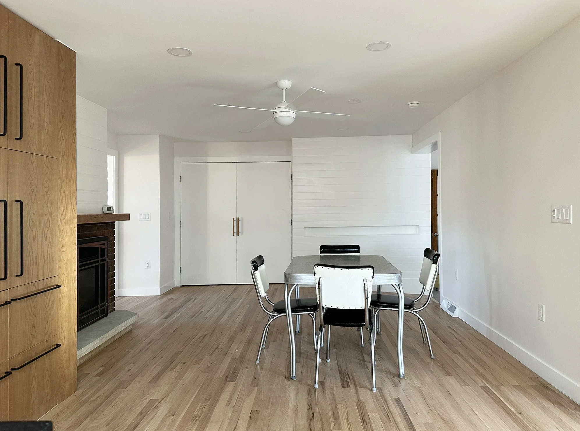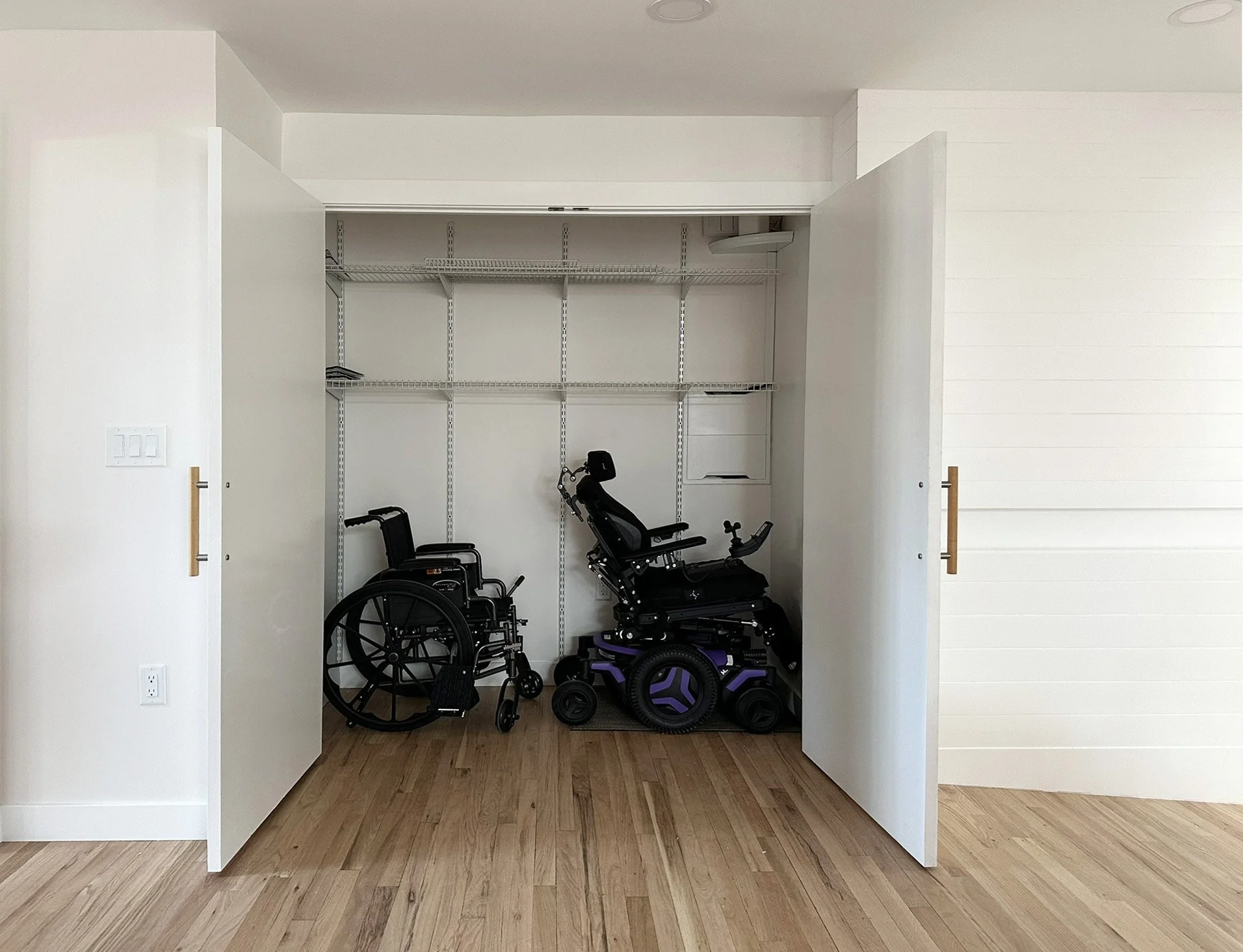 The kitchen: with drawers and roll under sink and cooktop. Plenty of space for wheel chairs. The dining area: with floor to ceiling pantry, a closet for wheel chair storage, and a ramp to the breezeway. The living room: with a view to the reservoir.